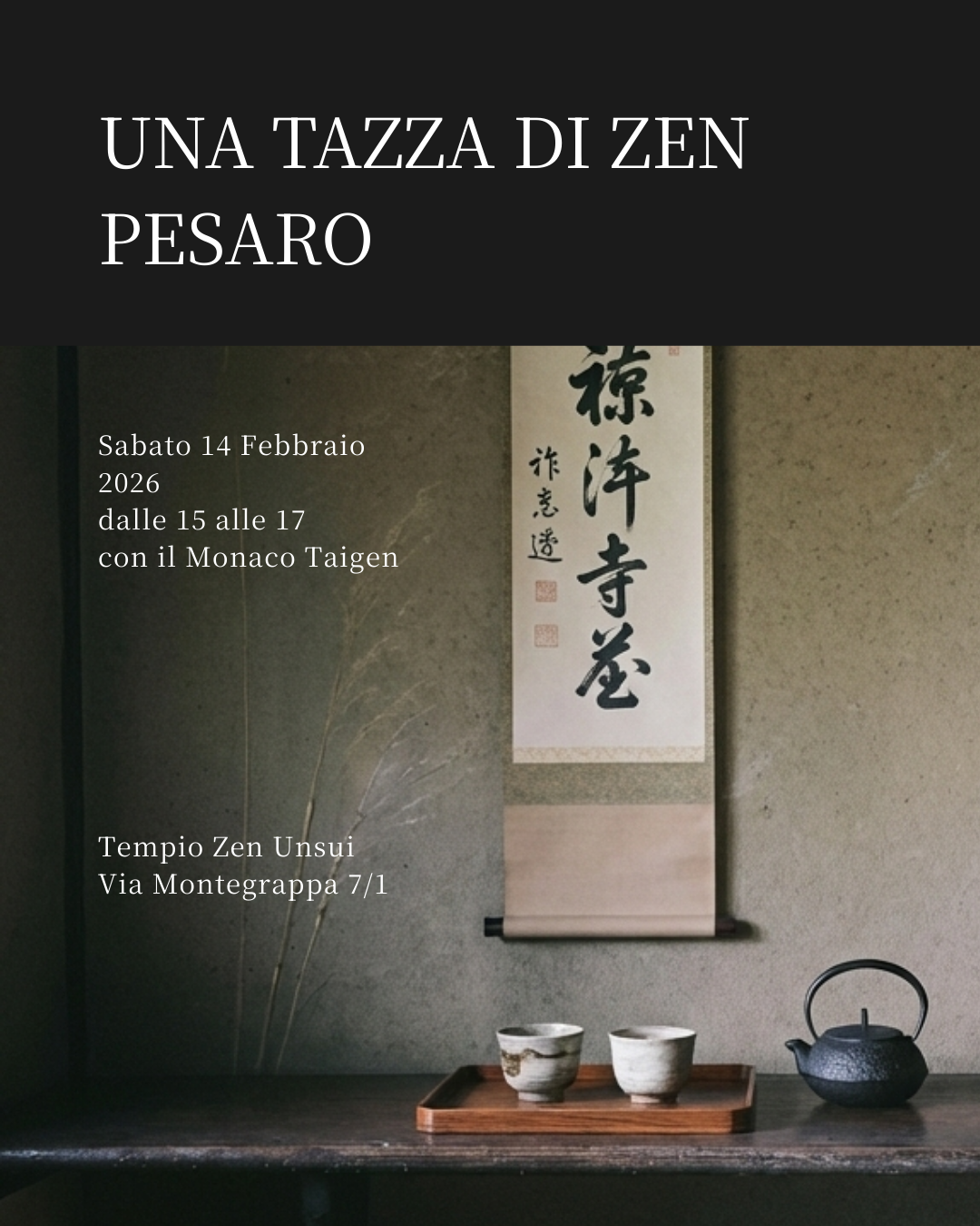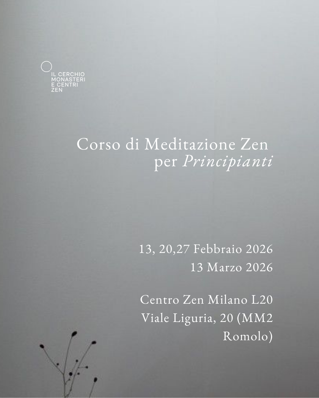 Scopri i nostri eventi Iscriviti Ora Scopri i nostri eventi Vai al calendario eventi Primi Passi nello Zen Inizia a Praticare! Il Cerchio. Monasteri e Centri Zen Scopri i luoghi della Pratica Buddhista Zen in Italia Milano Centro Zen Milano L20 Berceto SanboJi – Tempio dei Tre Gioielli. Cecina GyoSho – Camminando nella Vita Napoli Tempio Zen Ten Shin – Cuore di Cielo Puro Padova Tempio Zen Sokuzen – Orazen Pesaro Tempio Unsui – Nuvole e Acqua Metaverso Zen Metaverse – Il Monastero Virtuale di Ensoji Zen Village: dove essere umani. Scopri il luogo dove la tradizione Zen incontra i bisogni della nostra contemporaneità. Il Maestro Carlo Tetsugen Serra. Dove Meditare in Italia Studiare la Via del Buddha, è studiare sé stessi. Studiare sé stessi è dimenticare sé stessi. Dimenticare sé stessi vuol dire diventare parte del mondo. Eihei Dogen Scopri di più sul nostro lignaggio Pianta il Seme della Consapevolezza. DONA IL TUO 5X1000 Iscriviti e Potrai Meditare in tutte le nostre sedi, Accedere ai corsi e alle meditazioni di Dharma Academy gratuitamente, Sostenere concretamente i Centri e i Monasteri. Dona ora Sostieni l’impegno dei monaci buddhisti zen. Azioni concrete per aiutare tutti gli esseri senzienti. Scopri i progetti attivi! Partecipa ai nostri Eventi Calendario eventi 6 Febbraio ore 17.00 – 8 Febbraio ore 16.00 Berceto Seminario zen: Come incontrare la sofferenza Opportunità e strumenti di Consapevolezza Le vie per incontrare il dolore e trasformarlo Condotto e a cura di Sabrina Koren Montemurro, Monaca …… 13, 20, 27 Febbraio e 13 Marzo 2026 Milano SOLD-OUT – Corso di Meditazione Zen per principianti – Milano Un percorso esperienziale in quattro incontri, condotto dagli insegnanti di Dharma Tenryu e Eryu. I partecipanti verranno introdotti alla pratica della meditazione …… Calendario eventi Calendario Scopri le ultime news Tutte le news venerdì 6 Febbraio Ciclo di presentazioni – Principi zen per la vita quotidiana e la ricerca spirituale con Tetsugen Serra Ciclo di presentazioni con Tetsugen Serra Il Cerchio presenta una serie di incontri pubblici dedicati al libro Principi zen per la vita …… Tutte le news