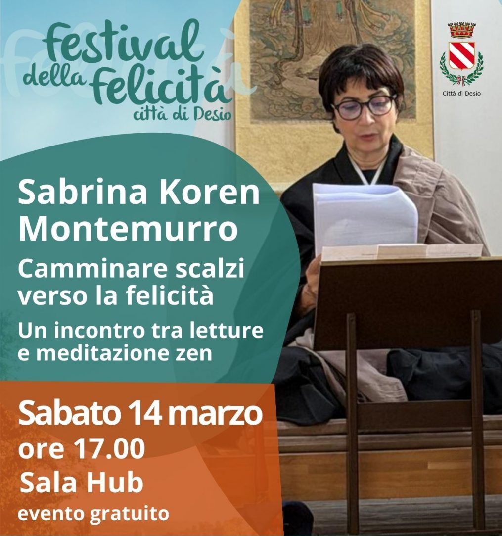 “Camminare scalzi verso la felicità” non sarà una presentazione nel senso consueto del termine, ma un incontro vivo e partecipato, guidato dalla monaca zen e autrice, Sabrina Koren Montemurro. L’omonimo libro diventa punto di partenza per entrare nella pratica: brevi sessioni di meditazione, letture condivise e un tempo dedicato alla firma copie.