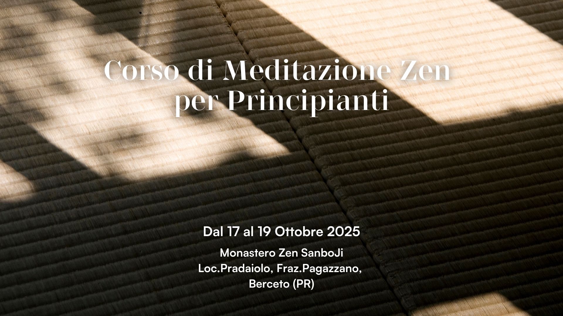 Scopri i nostri eventi Iscriviti Ora Scopri i nostri eventi Vai al calendario eventi Primi Passi nello Zen Inizia a Praticare! Il Cerchio. Monasteri e Centri Zen Scopri i luoghi della Pratica Buddhista Zen in Italia Milano Centro Zen Milano L20 Berceto SanboJi – Tempio dei Tre Gioielli. Cecina GyoSho – Camminando nella Vita Napoli Tempio Zen Ten Shin – Cuore di Cielo Puro Padova Tempio Zen Sokuzen – Orazen Pesaro Tempio Unsui – Nuvole e Acqua Metaverso Zen Metaverse – Il Monastero Virtuale di Ensoji Zen Village: dove essere umani. Scopri il luogo dove la tradizione Zen incontra i bisogni della nostra contemporaneità. Il Maestro Carlo Tetsugen Serra. Dove Meditare in Italia Studiare la Via del Buddha, è studiare sé stessi. Studiare sé stessi è dimenticare sé stessi. Dimenticare sé stessi vuol dire diventare parte del mondo. Eihei Dogen Scopri di più sul nostro lignaggio Pianta il Seme della Consapevolezza. DONA IL TUO 5X1000 Iscriviti e Potrai Meditare in tutte le nostre sedi, Accedere ai corsi e alle meditazioni di Dharma Academy gratuitamente, Sostenere concretamente i Centri e i Monasteri. Dona ora Sostieni l’impegno dei monaci buddhisti zen. Azioni concrete per aiutare tutti gli esseri senzienti. Scopri i progetti attivi! Partecipa ai nostri Eventi Calendario eventi Da venerdì 17 a domenica 19 Ottobre 2025 Berceto Corso di Meditazione Zen per Principianti a SanboJi – Ottobre 2025 Tre giorni per scoprire le basi della Pratica dello Zen Orario di arrivo venerdì 17 Ottobre ore 14:30 | Fine domenica 19 Ottobre ore 16:00 Un corso …… Domenica 19 Ottobre 15.00-17.00 Milano Una Tazza di Zen – Milano – Domenica 19 Ottobre 2025 Riprendono gli incontri mensili “Una Tazza di Zen” nel centro di Milano L20, in cui si alternano momenti di meditazione a momenti …… Calendario eventi Calendario Scopri le ultime news Tutte le news venerdì 17 Ottobre Siamo felici di annunciare l’uscita del nuovo libro del Maestro Tetsugen Serra “Principi Zen per la vita quotidiana e la ricerca spirituale”. Siamo felici di annunciare la pubblicazione del libro “PRINCIPI ZEN PER LA VITA QUOTIDIANA E LA RICERCA SPIRITUALE” di Tetsugen Serra. I …… Tutte le news